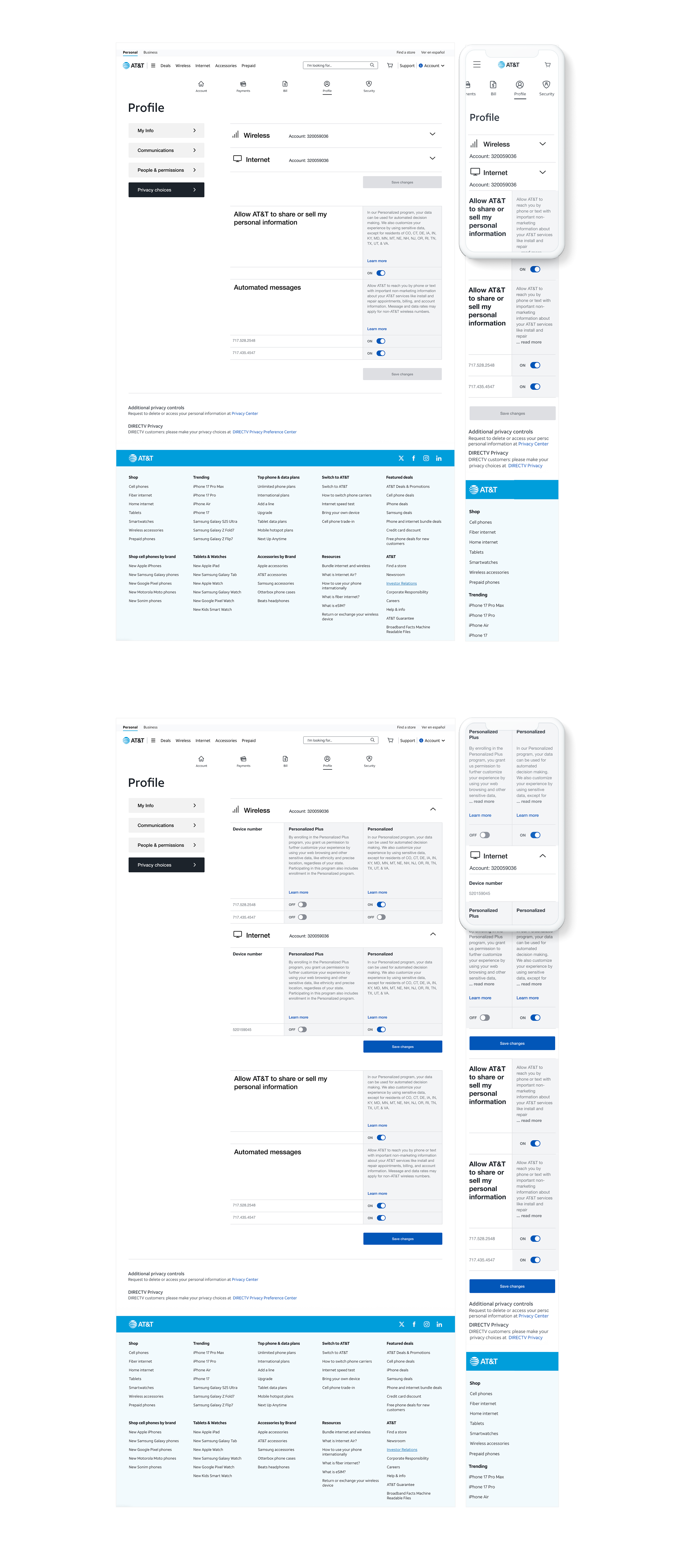 I needed to design a system that presented privacy choices clearly and neutrally while meeting evolving legal and compliance requirements. To address this challenge, I focused on creating a structure that could simplify complex consent information while remaining scalable as privacy programs continue to evolve. Since privacy settings are often reviewed across different devices, the layout also needed to adapt naturally to varying screen sizes.